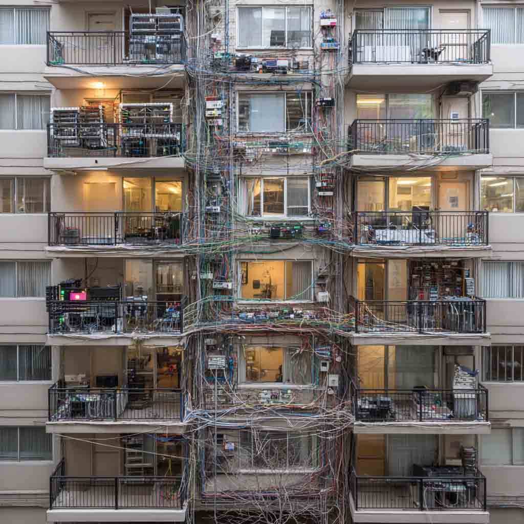 Квартира или дом с бетонными стенами, длинными коридорами, лестничными маршами или этажами создают зоны, куда сигнал одного роутера просто не доходит. Даже мощная модель не «пробивает» перекрытия без потерь.